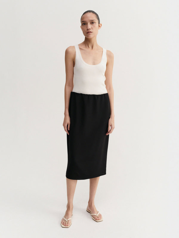 Cia Silk Skirt is crafted from lightweight silk. Cut to a softly tapered pencil silhouette that falls to a midi length. Finished with an elasticated waistband for ease and comfort.