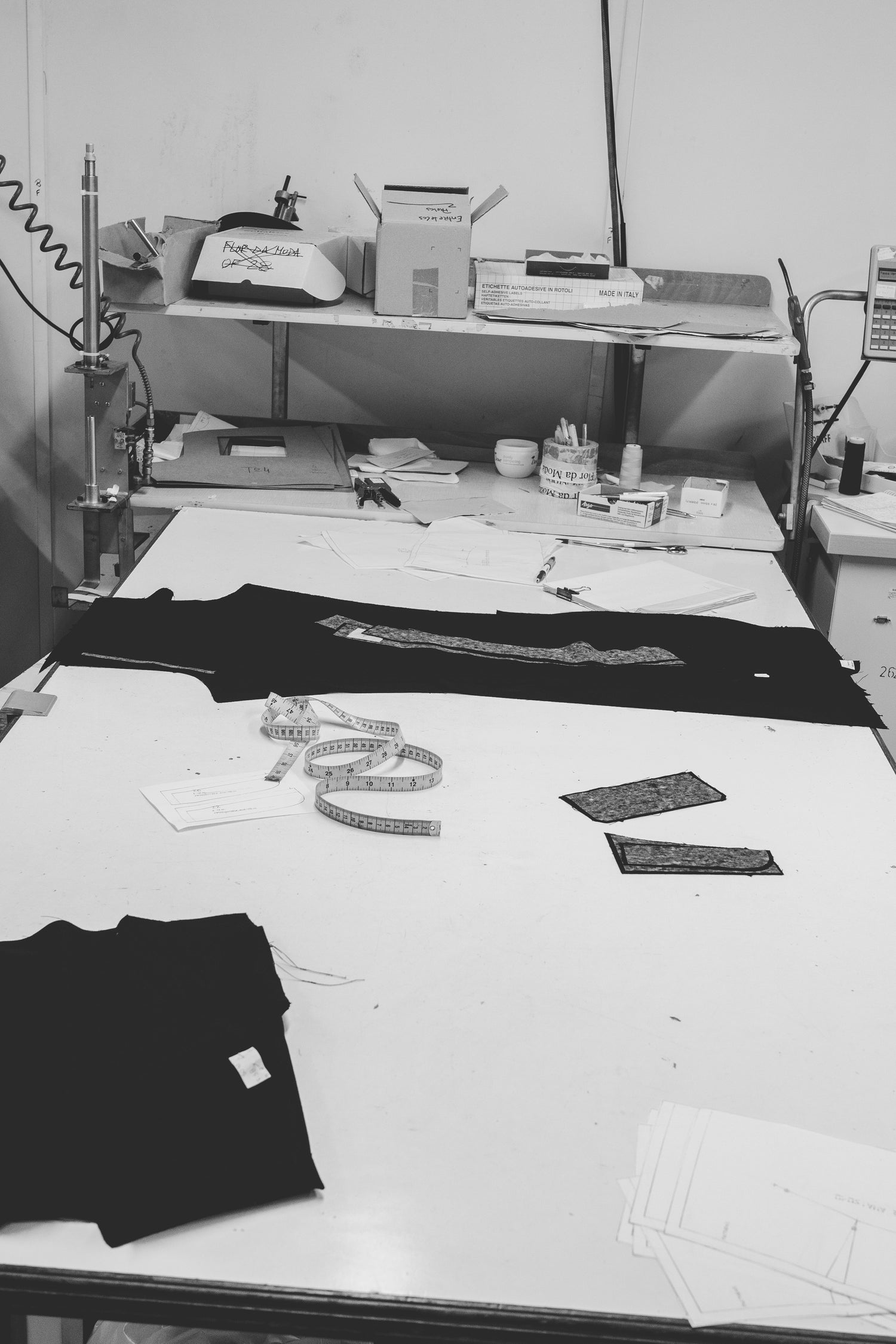The first step in our design process is fabric sourcing where we choose the materials we want to work with for a particular design. We search through different materials and color charts to find the perfect match for our design.