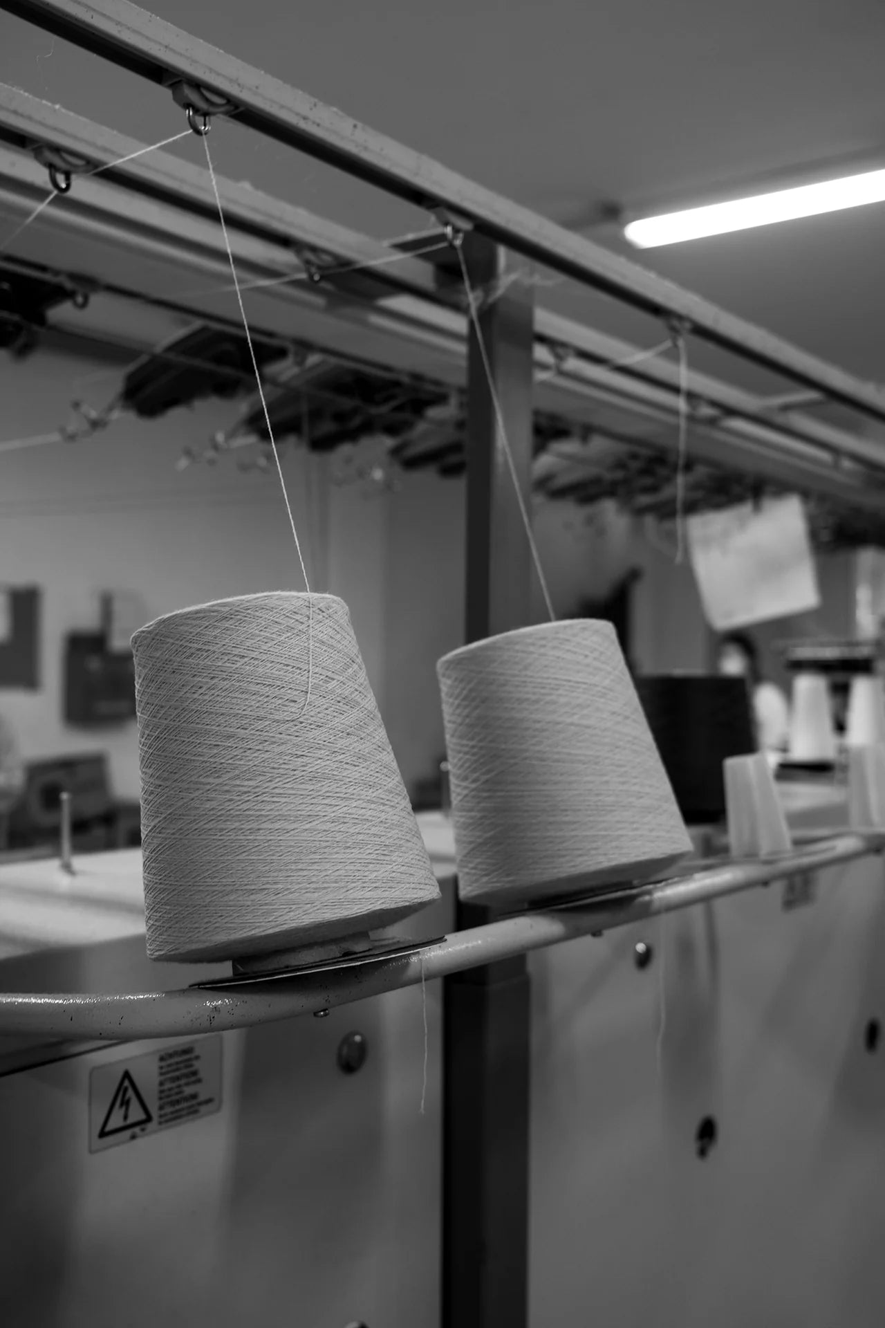In this process the coloured wool is twisted and spun into the yarn that later on is being used to knit the garments. A spinning machine stretches, spins and twists the wool fibers together into strong and beautiful high quality yarn. The ready spun yarn is then wrapped around cardboard cones and packed into boxes ready to be shipped to our factories for the next step in the production chain.