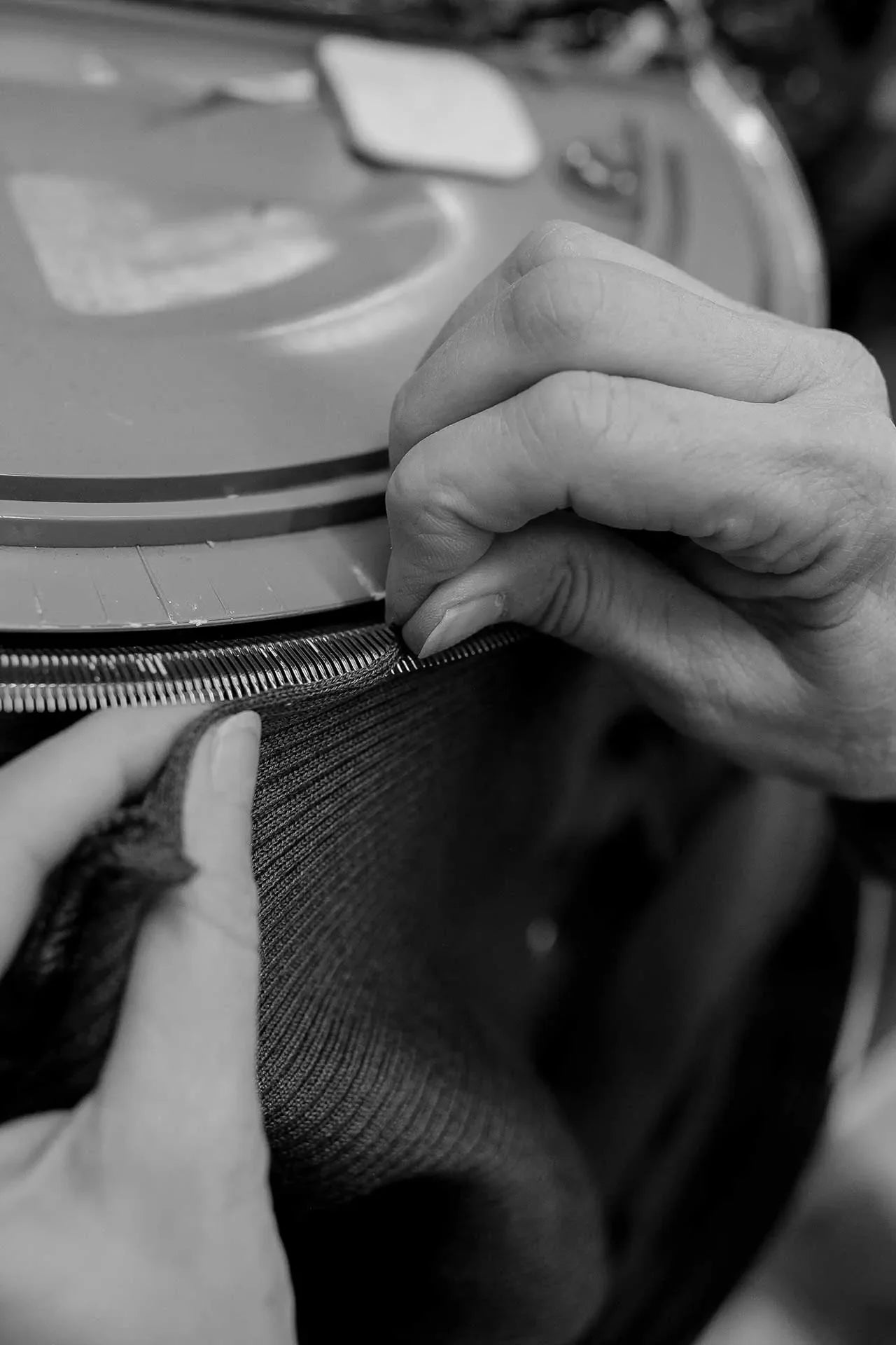 By linking, the knitted panel pieces are attached so that they become whole garments. Linking is always done manually and it’s the part of the process that takes the most time.