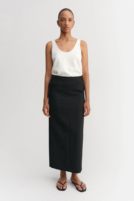Bay Skirt is crafted from a refined woven blend with a smooth hand feel and elegant structure. Tailored to a sleek, ankle-length column silhouette with a back split and discreet side pockets. Finished with a smooth lining for a refined fit.