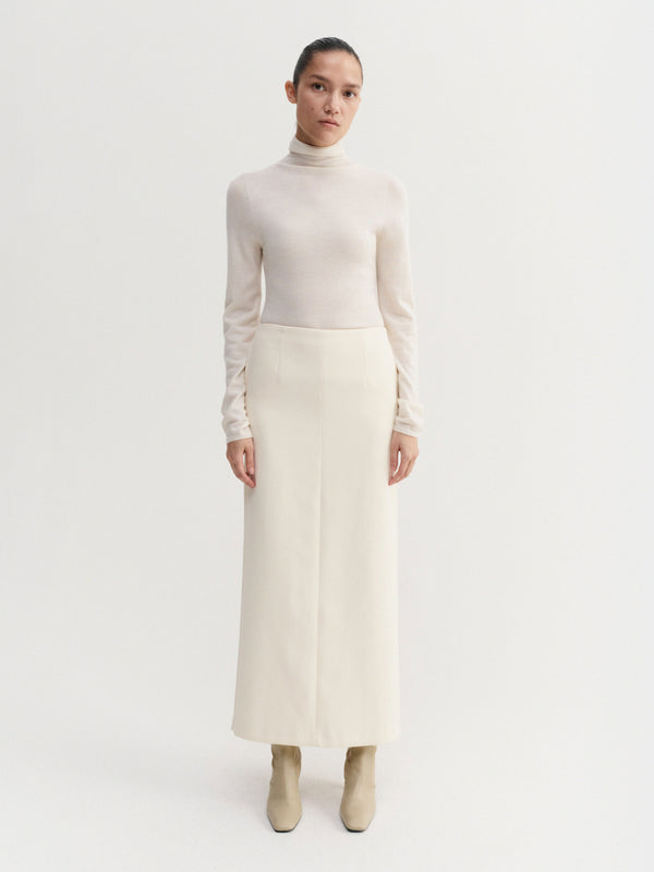 Bay Skirt is crafted from a refined woven blend with a smooth hand feel and elegant structure. Tailored to a sleek, ankle-length column silhouette with a back split and discreet side pockets. Finished with a smooth lining for a refined fit.