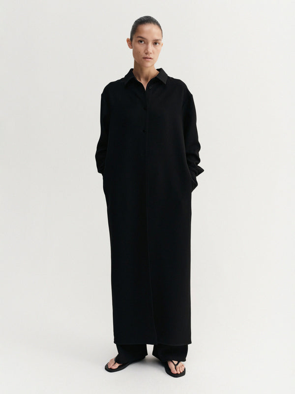 Nile Dress is crafted from a luxurious and responsible crepe fabric comprising 71% Naia™ acetate and 29% polyester. It is shaped to a loose relaxed silhouette with a neat collar, spacious sleeves and dropped shoulders, complemented by discreet side pockets. Fastens with tonal buttons through the front and cuffs.